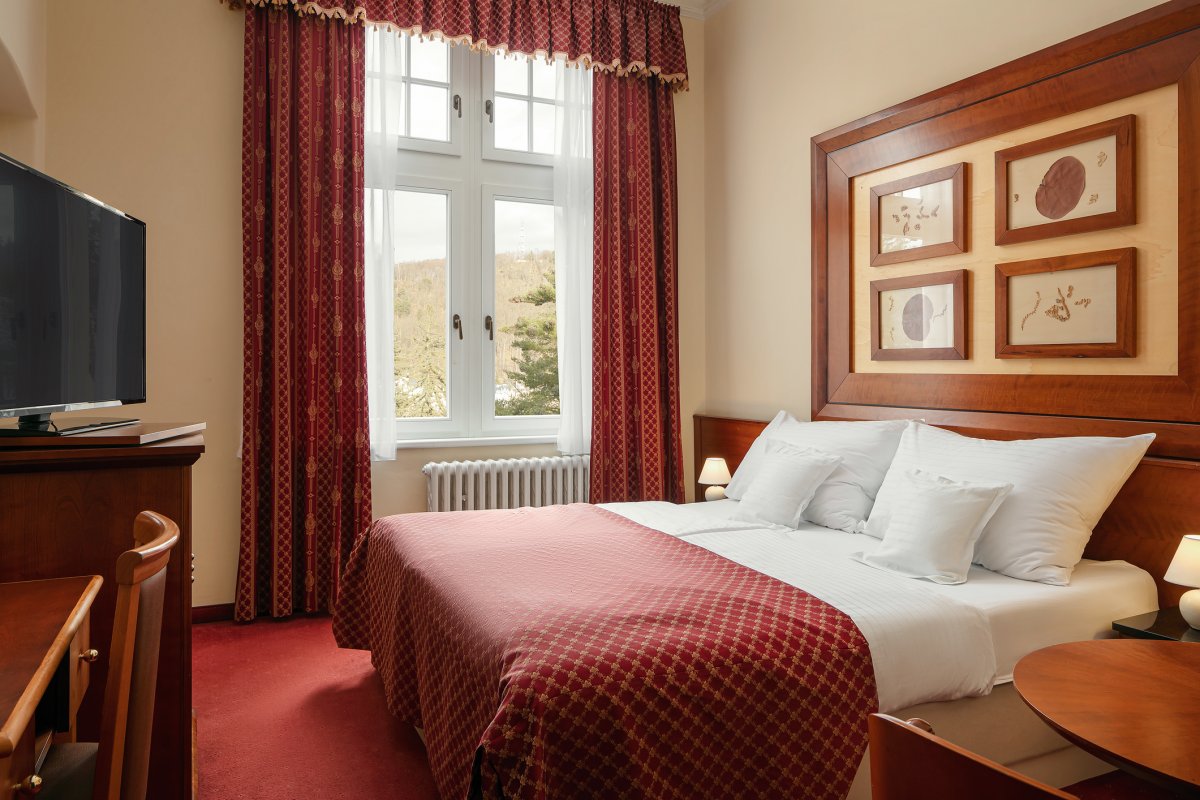 Das in einem der schönsten Staddteile von Karlsbad, dem Westend, gelegene 4-Sterne Hotel Smetana ist durch die Verbindung zweier Jugendstilgebäude, die Anfang des 20. Jahrhunderts erbaut wurden, entstanden. Unsere anspruchsvollen Gäste erwartet neben der einzigartigen Lage in einem schön angelegten Garten sehr schönes Hotel mit einem Schwimmbad und einem gut ausgestatteten Wellness-Zentrum. Auch das stivolle Restaurant Strunz bietet eine angenehme Atmosphäre und natürlich eine breite Auswahl an Spezialitäten aus der tschechischen und internationalen Küche.