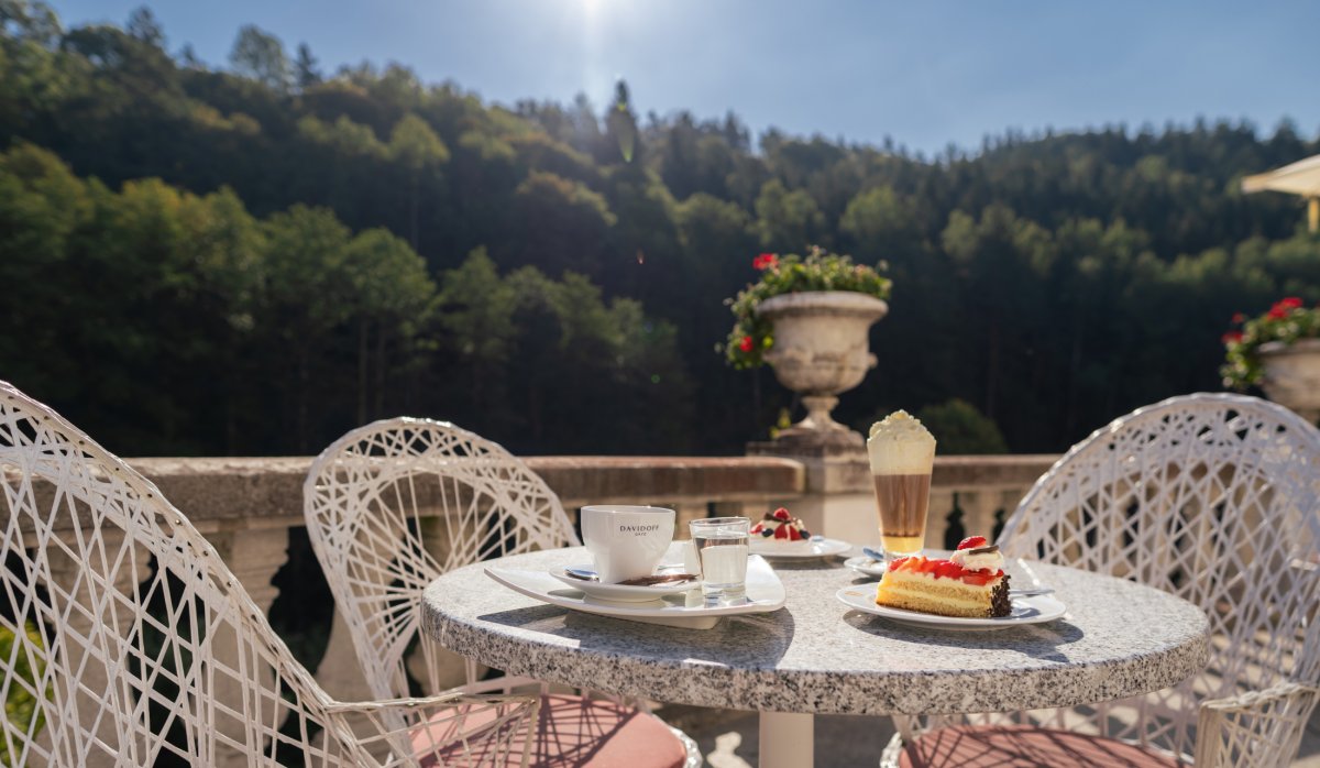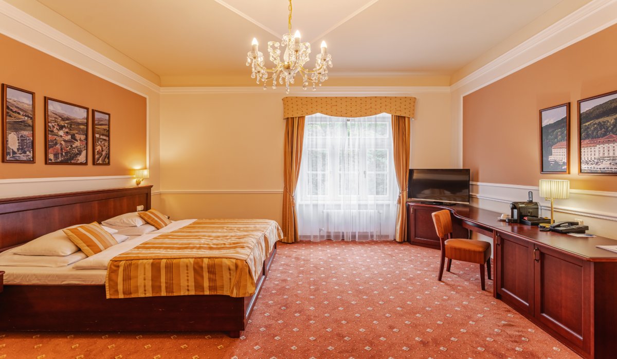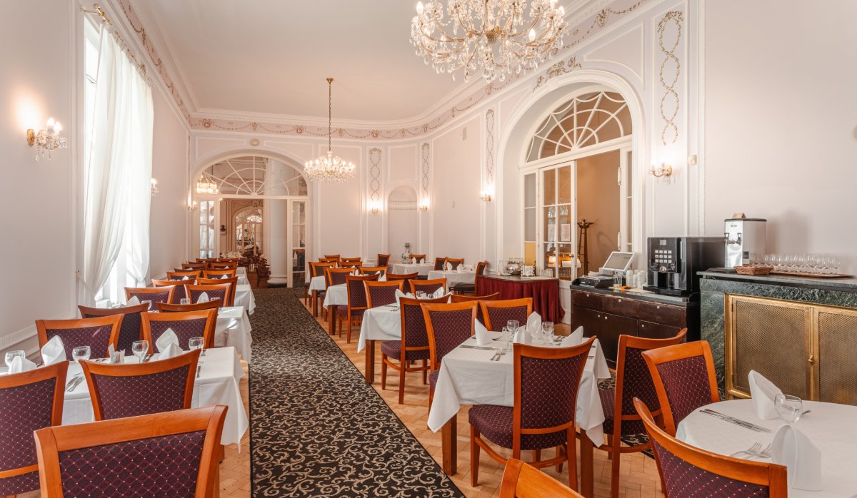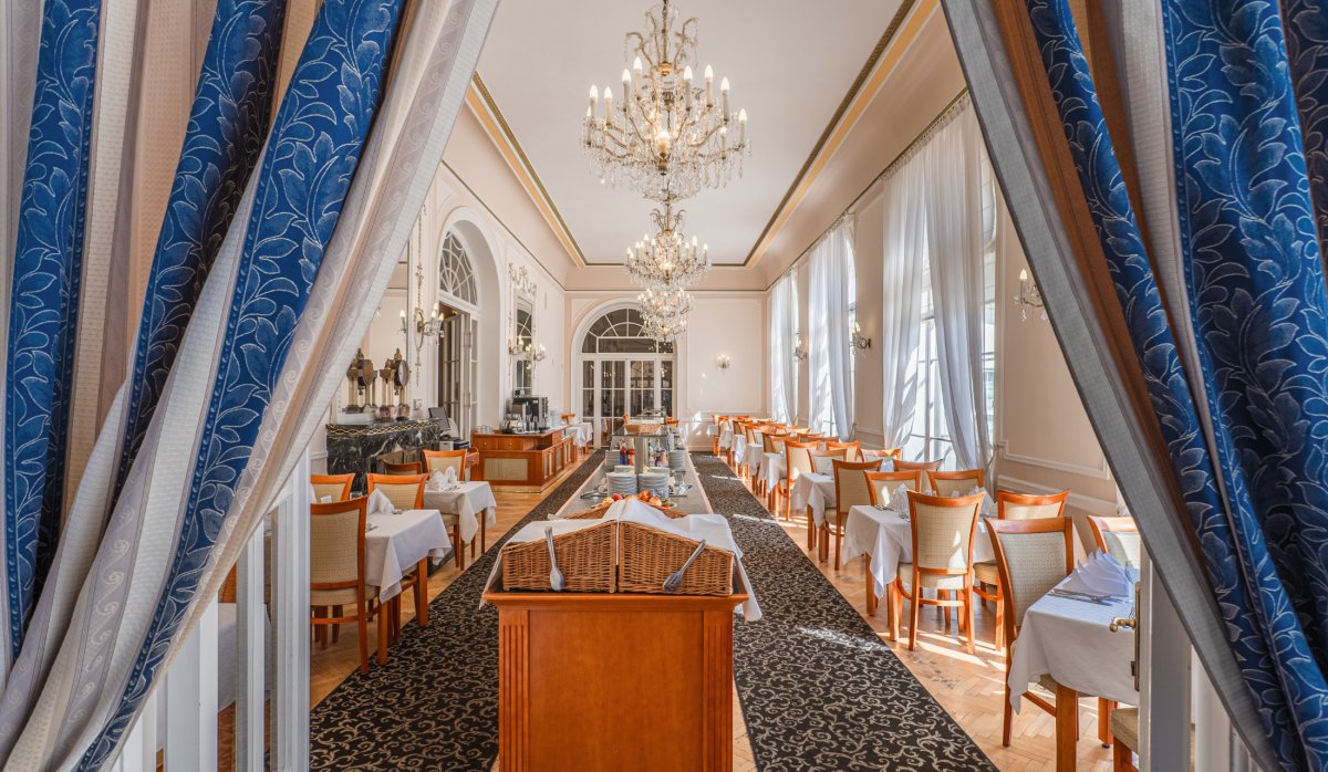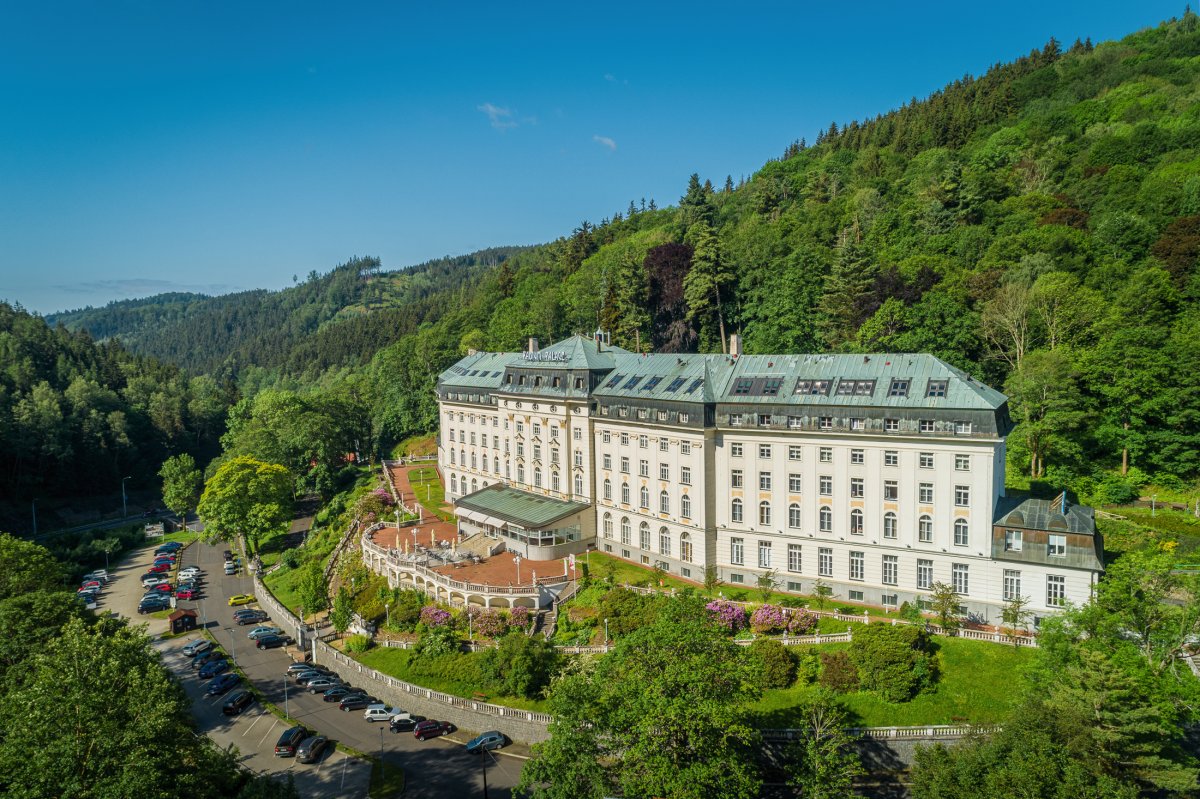 Das im Stil des Wiener Neoklassizismus erbaute Hotel ist malerisch inmitten eines Waldparks gelegen. Es wurde im Jahr 1912 eröffnet und im Jahr 1998 grundlegend renoviert und modernisiert. Dadurch hat es nichts von seinem luxuriösen Stil und Charakter verloren, die den Gast bereits beim Betreten des Hauses verzaubern. Das Hotel bietet gemütliche und komfortable Zimmer. In den 5 Restaurants wird ein breites Angebot an Speisen geboten. Nutzen Sie die großzügige Sonnenterrasse mit Blick auf den Park und das Erzgebirge und lassen Sie sich im verglasten Kaffee mit so mancher Leckerei verwöhnen. Die Kuranwendungen werden direkt im Hotel professionell durch bestens geschultes Personal durchgeführt und bewegen sich ebenso auf dem hohen Niveau des Hauses.