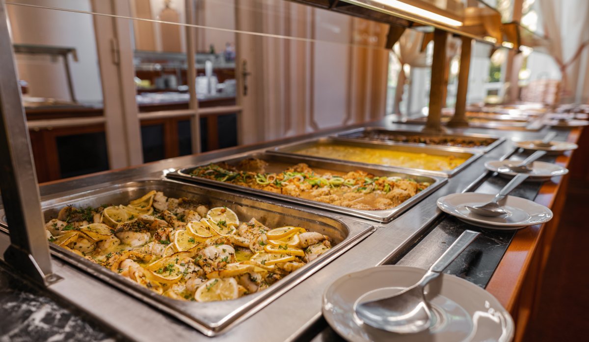 • Mittag- und Abendessen mit Menüwahl (Auswahl aus 5 Gerichten)