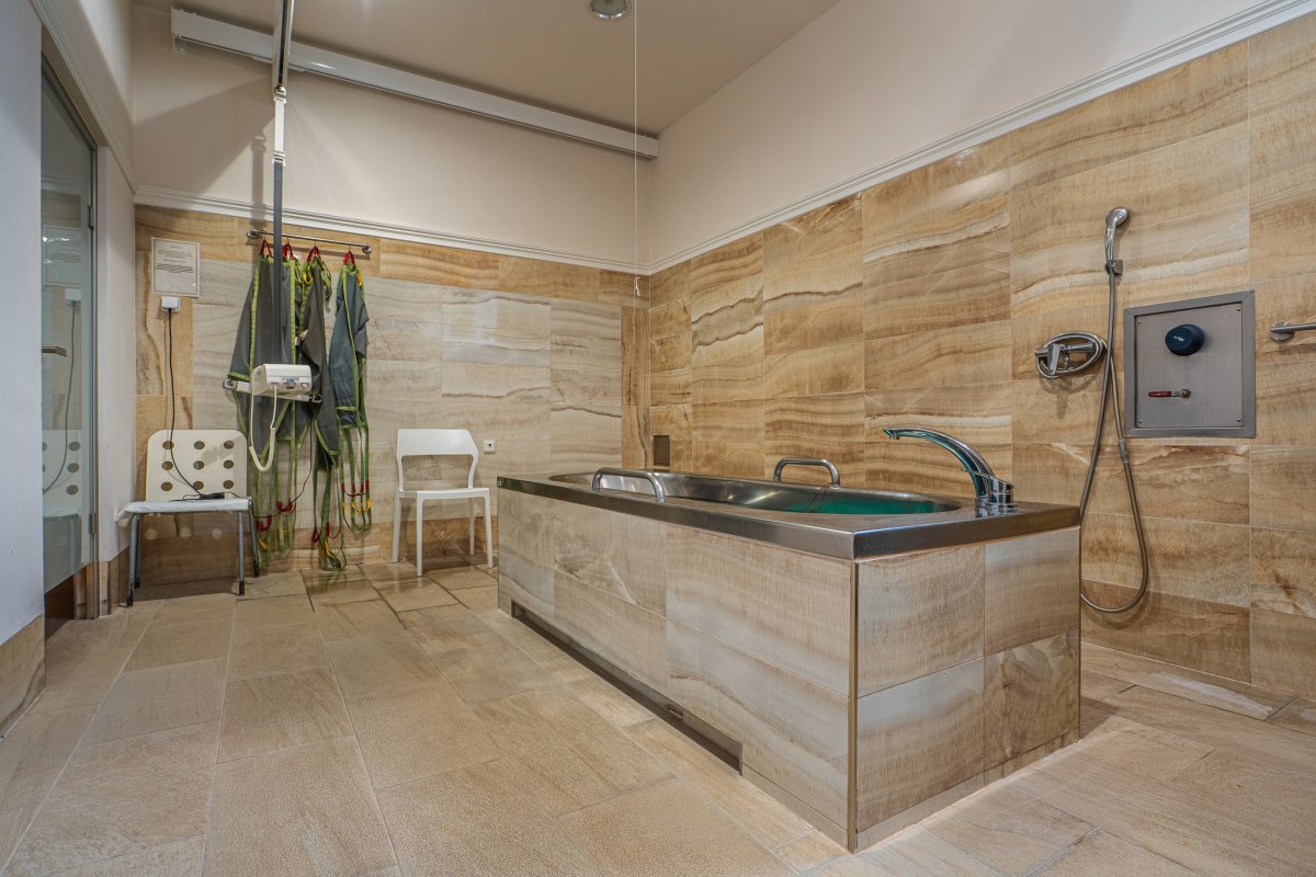 Klassische Massagen, Reflexzonenmassagen und Bindegewebemassagen, Lymphdrainagen manuell oder mit Gerät, Akupunktur, Kneipp-Anlage, Unterwassermassagen, Rehabilitationsbehandlung, Perlbäder mit und ohne Zusatz, Schottische Spritze, Paraffinpackungen, Krankengymnastik auch im Schwimmbecken, trockene CO2-Gasbäder, Gasinjektionen, Ultraschall mit Öl und Wasser, Magnetotherapien, Elektrotherapien, Oxygenotherapien, Inhalationen (Aerosol), Radonbäder, Brachyradiumtherapie, Röntgentherapie, Diadynamik, Diathermie, Lasertherapie, Kryotherapie, Whirlbad