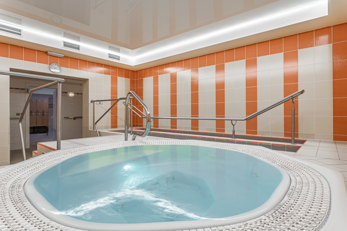 Pool, Whirlpool, Kneippanlage, Dampfbad, Trockensauna und Infrarotsauna. Aroma-Massagen, Thai-Massagen (klassisch oder mit Öl), Cellulite-Programme, Kosmetikstudio, Frisörsalon, Pediküre, Aromabad, Schokolademassage, Lavasteimassage, Indische Kopfmassage, Biolampe, Solux