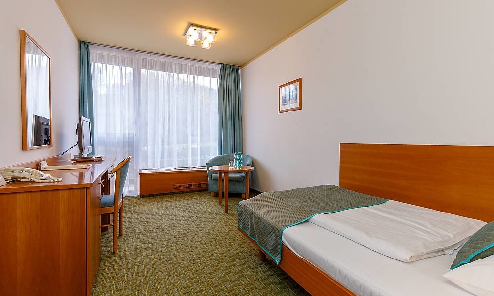 Das 4-Sterne Hotel Thermal bestimmt durch sein imposantes Erscheinungsbild wie kein anderes Hotel das Stadtbild von Karlsbad. Die zentrale Lage des großen 4-Sterne Hotels ist ideal für einen Aufenthalt im Zentrum des Kurorts. In wenigen Gehminuten gelangt man in das Stadtzentrum und den den Kolonnaden mit den Heilquellen. Zuletzt im Jahr 2002 vollständig und im Jahr 2009 in Teilen letztmalig renoviert bietet das Hotel dem Gast eine Vielzahl von Einrichtungen, die sich der Gast für einen angenehmen und komfortablen Aufenthalt nur wünschen kann. Natürlich wird der Service für die Gäste wird in diesem komfortablen Hotel ebenso großgeschrieben wie die fachgerechte und wirkungsvolle Durchführung der Kuranwendungen und Wellnessprogramme. Nicht zuletzt ist das dem Hotel angeschlossene Kongresszentrum eine ideale Lokation für viele internationale Events wie z.B. für das Karlsbader Filmfestival.