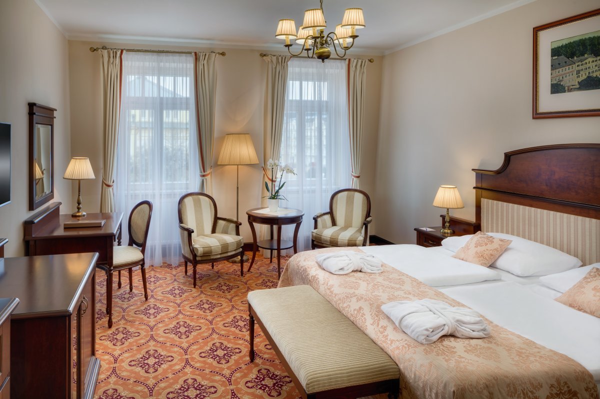 Das 4-Sterne-Superior Ensana Health Spa Hotel Hvezda liegt in der weitgehend autofreien Kurzone von Marienbad am oberen Teil des Goetheplatzes. Auch nach der Erweiterung des Resorts um ein weiteres Gebäude, das mit dem bisherigen Hotel Skalnik zu dem neuen Spa Hotel Imperial vereinigt wurde, bietet das Haus mit seinen klassischen Fassaden, seiner geschmackvollen Einrichtung mit den eleganten neuen Panoramaufzügen im Hotel Hvezda sowie seiner erstklassigen Ausstattung und dem überragenden Service dem Gast vollkommenen Komfort gehobener internationaler Hotellerie.
