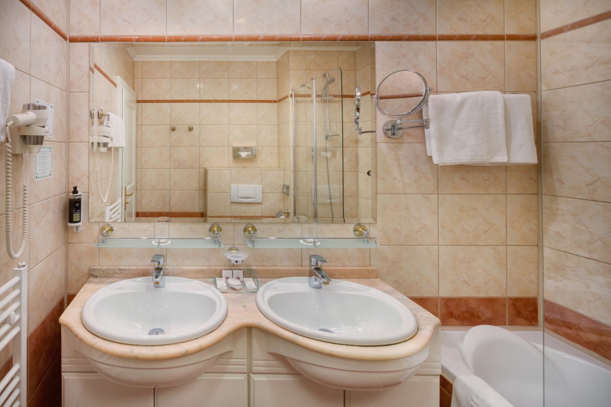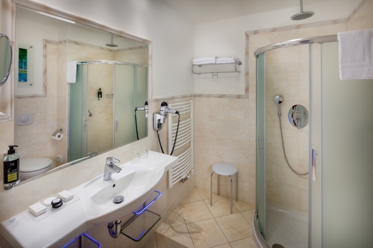 teilweise Balkon, SAT-TV, Telefon mit Durchwahl, WC und Bad mit Dusche oder Badewanne, Bademantel und Frotteepantoffeln kostenlos, Minibar (gegen Gebühr), Schließfach / Safe elektronisch, Fön
