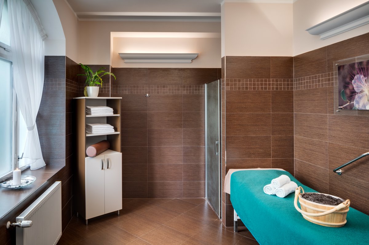 Die Anwendungen können teilweise auch in der Kurabteilung des Kurhotelkomplexes Nove Lazne (Neues Bad) - Centralni Lazne (Zentralbad) - Maria Spa durchgeführt werden. Die Hotels und Kurkomplexe sind durch beheizte und überdachte Korridore miteinander verbunden.