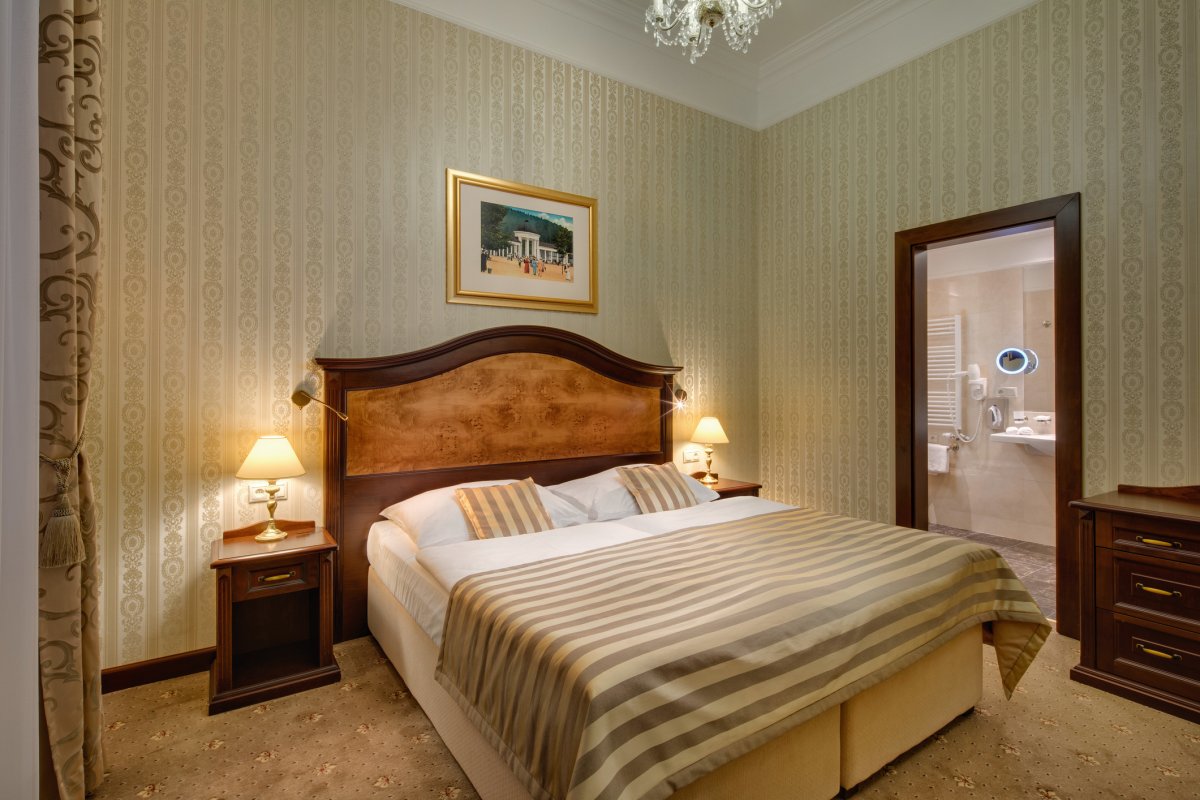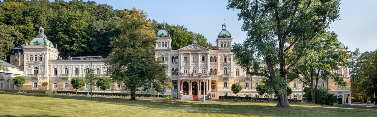 Eines der schönsten architektonischen Schmuckstücke von Marienbad ist das 5-Sterne-Superior Ensana Health Spa Hotel Nove Lazne. Der Prachtbau liegt zentral in der Kurzone und bietet ein breites Spektrum an Kuranwendungen. Auf einer Gesamtfläche von 2.700 m² bietet die Royal Medical Spa & Wellness-Landschaft seinen Gästen ein äußerst umfangreiches Therapie- und Entspannungsangebot. Die Einrichtungen und die Kurbehandlung in diesem Haus wurden zudem international zertifiziert, so dass sichergestellt ist, dass diese auf höchstem Niveau erfolgt. Das Hotel verfügt über drei Schwimmbecken im optisch sehr ansprechenden Römerbad und über ein eigenes Beauty-Zentrum. Im Jahr 2007 erfolgte die Verbindung mit dem 4-Sterne Hotel Centralni Lazne zu einem Kurkomplex, der im Mai 2011 um das neu eröffnete 4-Sterne Hotel Maria Spa erweitert wurde. Die Zimmer und Suiten sind luxuriös ausgestattet und dem Stil des Hauses entsprechend eingerichtet. Neben dem Royal-Restaurant, das seine Gäste auf kulinarisch hohem Niveau verwöhnt, sorgen sich auch die erneuerte Lobby-Bar und das Wiener Café mit einer großen Auswahl an Süßspeisen um das leibliche Wohl der Gäste. Durch die Neugestaltung der Lobbybar und des Interieurs des Restaurants 'Royal' wurde hat das Ambiente des Hotels ein weiteres mal deutlich dazugewonnen.