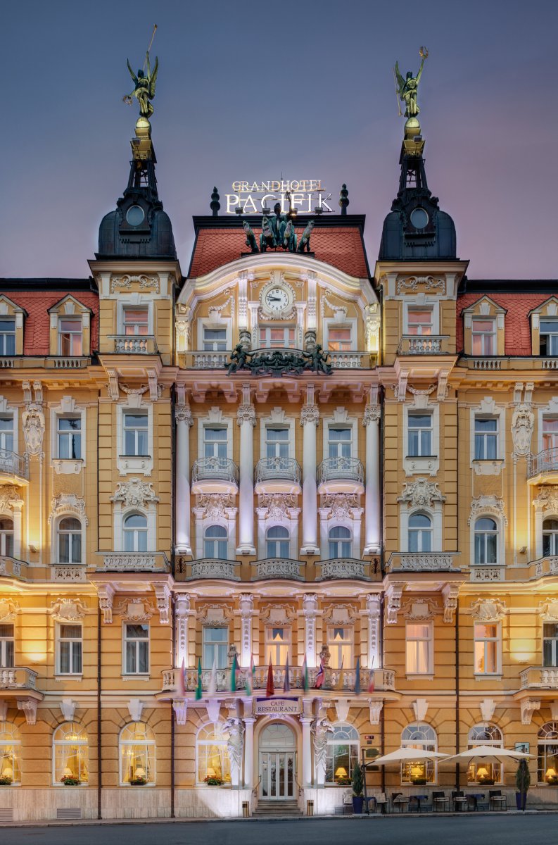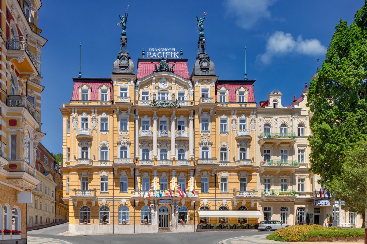 In unmittelbarer Nähe zur Kurpromenade liegt dominant am oberen Ende der Hauptstraße das architektonisch verschwenderisch ausgestaltete Ensana Health Spa Hotel Pacifik. Die geschmackvolle Einrichtung der 96 Zimmer wird einem 4-Sterne-Haus voll gerecht. Das Restaurant Primavera bietet neben der internationalen und böhmischen auch italienische Küche an. Alle Kuranwendungen einschließlich Mineralbäder können im Haus durchgeführt werden. Auch der Wellness-Bereich mit Schwimmbad, Solarium und Laserzentrum bietet eine moderne und exklusive Ausstattung. Die Einrichtungen und die Kurbehandlung in diesem Haus wurden zudem international zertifiziert, so dass sichergestellt ist, dass diese auf höchstem Niveau erfolgt.