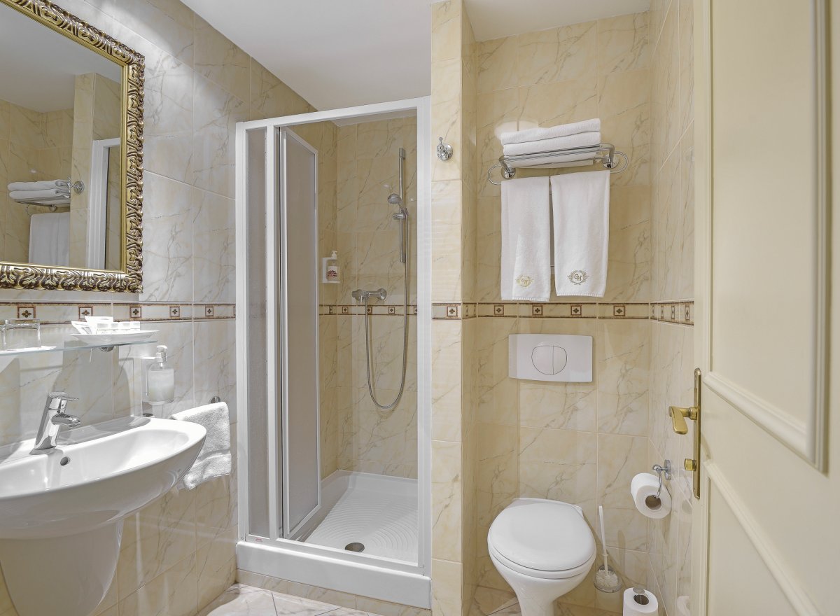 teilweise Balkon, SAT-TV, Telefon mit Durchwahl, WC und Badezimmer, Bademantel, Minibar (gegen Gebühr), Schließfach / Safe, Fön