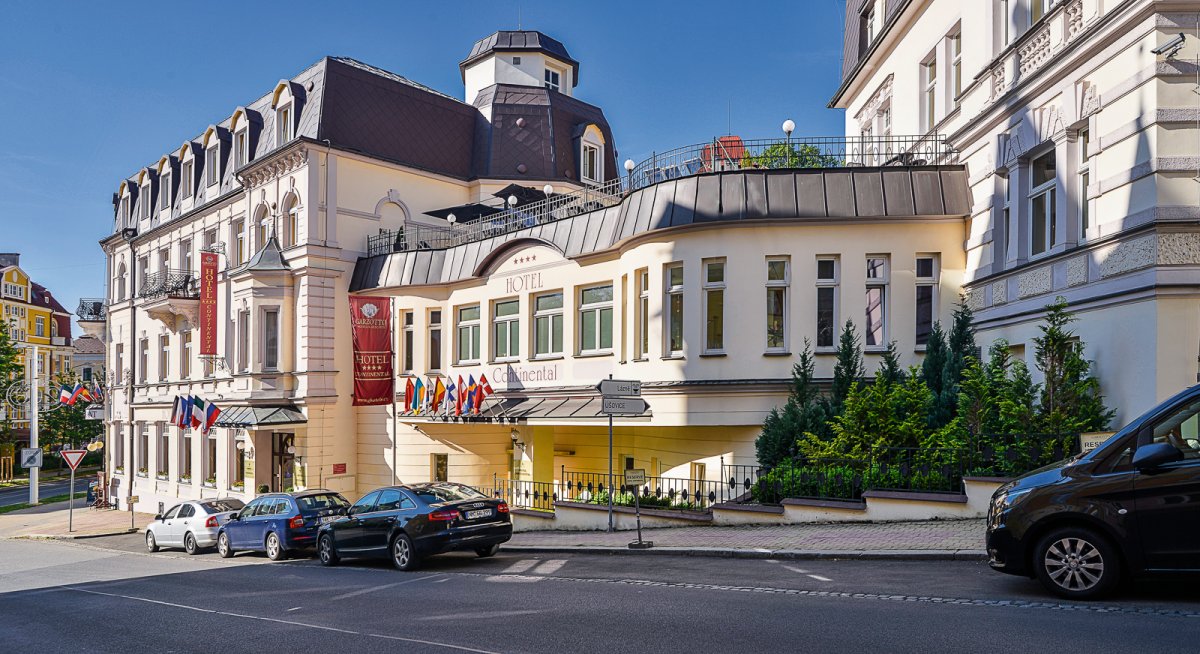 Das 4-Sterne-Hotel Continental liegt in zentraler Lage direkt an der Hauptstraße mit Blick auf den benachbarten Kurpark. Das aus zwei zusammenhängenden klassizistischen Gebäuden bestehende Hotel wurde zuletzt im Jahr 2008 nach einer grundlegenden Renovierung neu eröffnet. Es bietet dem Gast alle Annehmlichkeiten eines modernen Kurhotels. Die Zimmer sind geschmackvoll und komfortabel eingerichtet. Der Spa & Wellnessbereich besticht durch seine vielfältigen Regenerations- und Entspannungsmöglichkeiten. Auch das kulinarische Angebot des Hotels mit seinem Restaurant, dem Café sowie einer Bierstube ist breit gefächert und bietet dem Gast eine breite Auswahl an Spezialitäten der böhmischen und internationalen Küche.